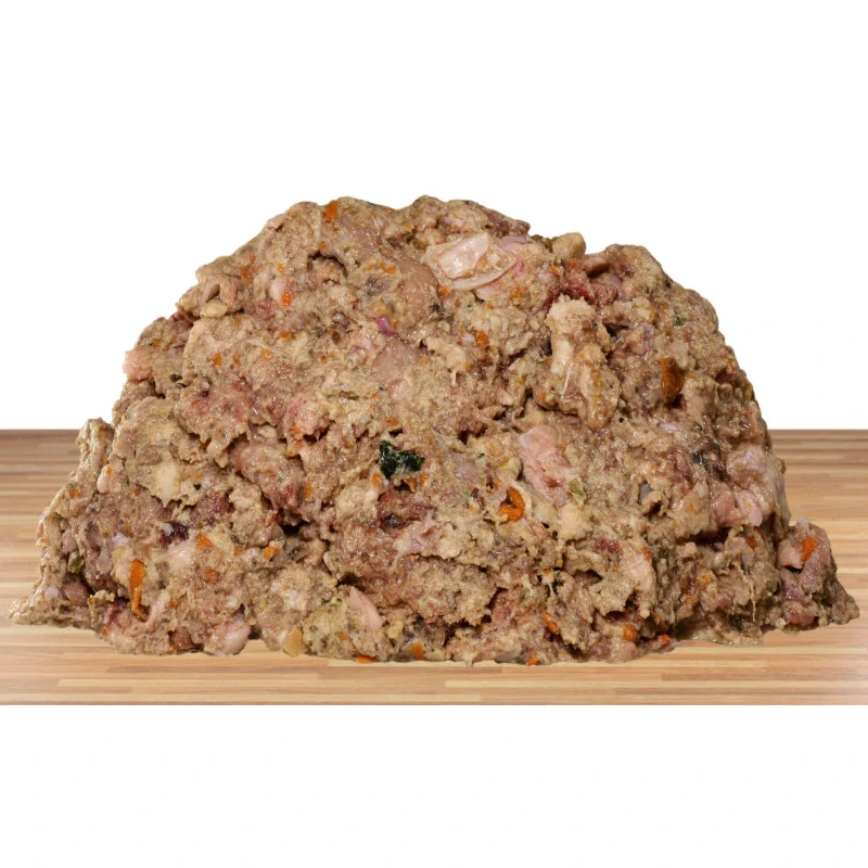 jehněčí maso 40,5%, jehněčí dršťky 24%, jehněčí droby 15%, jehněčí hrudí 3%, mrkev 11%, jablka a hrušky 4%, lněný olej 1,5%, bylinková směs 1%